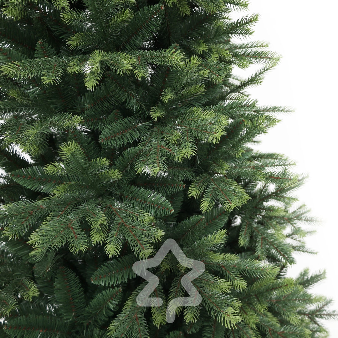 Himalaja-Fichte 180 cm zeichnet sich durch eine elegante Silhouette und einen klassischen Look und einer Kombination aus 3D‑PE‑ und 2D‑PVC‑Nadeln mit zweifarbiger Optik aus. Passt perfekt in moderne wie auch klassische Interieurs. Dieses Modell zählt seit Langem zu unseren Bestsellern.