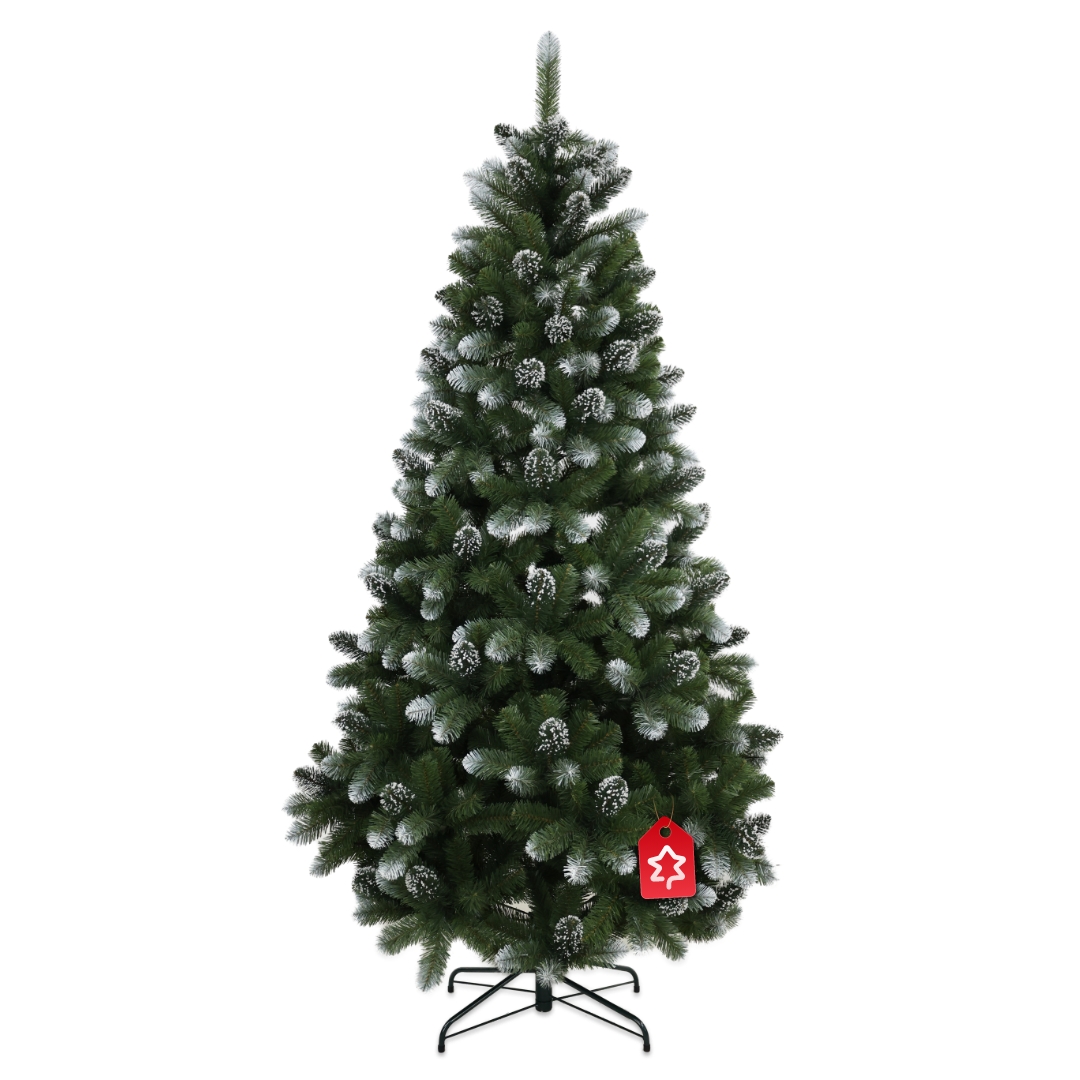 Kiefer verschneit 2D 180 cm zeichnet sich durch lange Nadeln sowie ein volles, voluminöses Erscheinungsbild und einem dezenten Schneeeffekt, der sofort winterliche Stimmung zaubert aus.