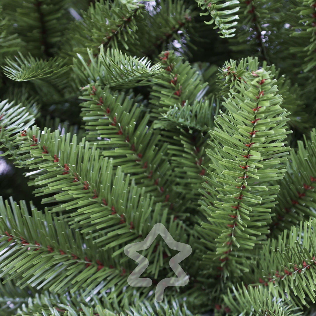 Normannische Tanne 210 cm zeichnet sich durch feine, flache Nadeln und eine hochwertige Anmutung und besonders dichtem Geäst aus 3D‑PE‑ und 2D‑PVC‑Nadeln aus.