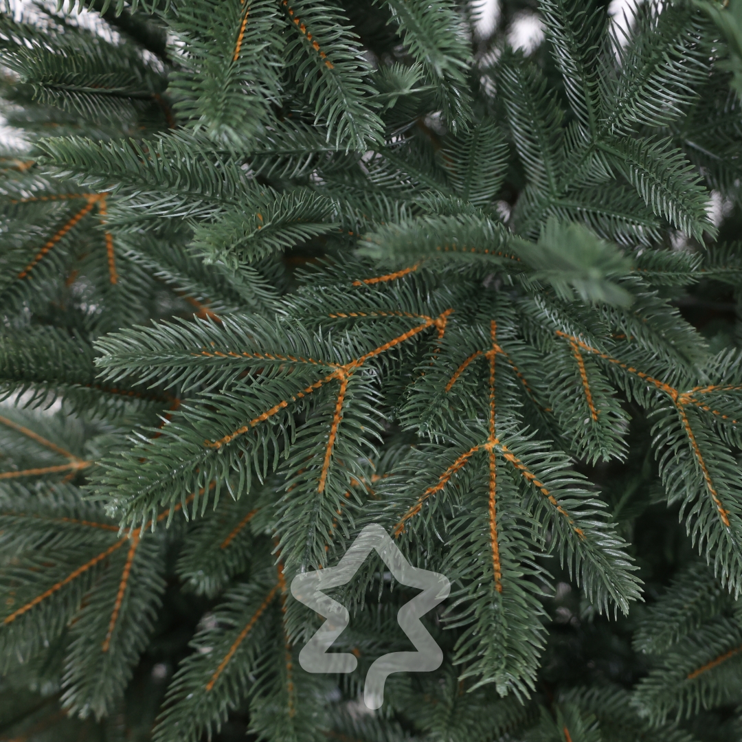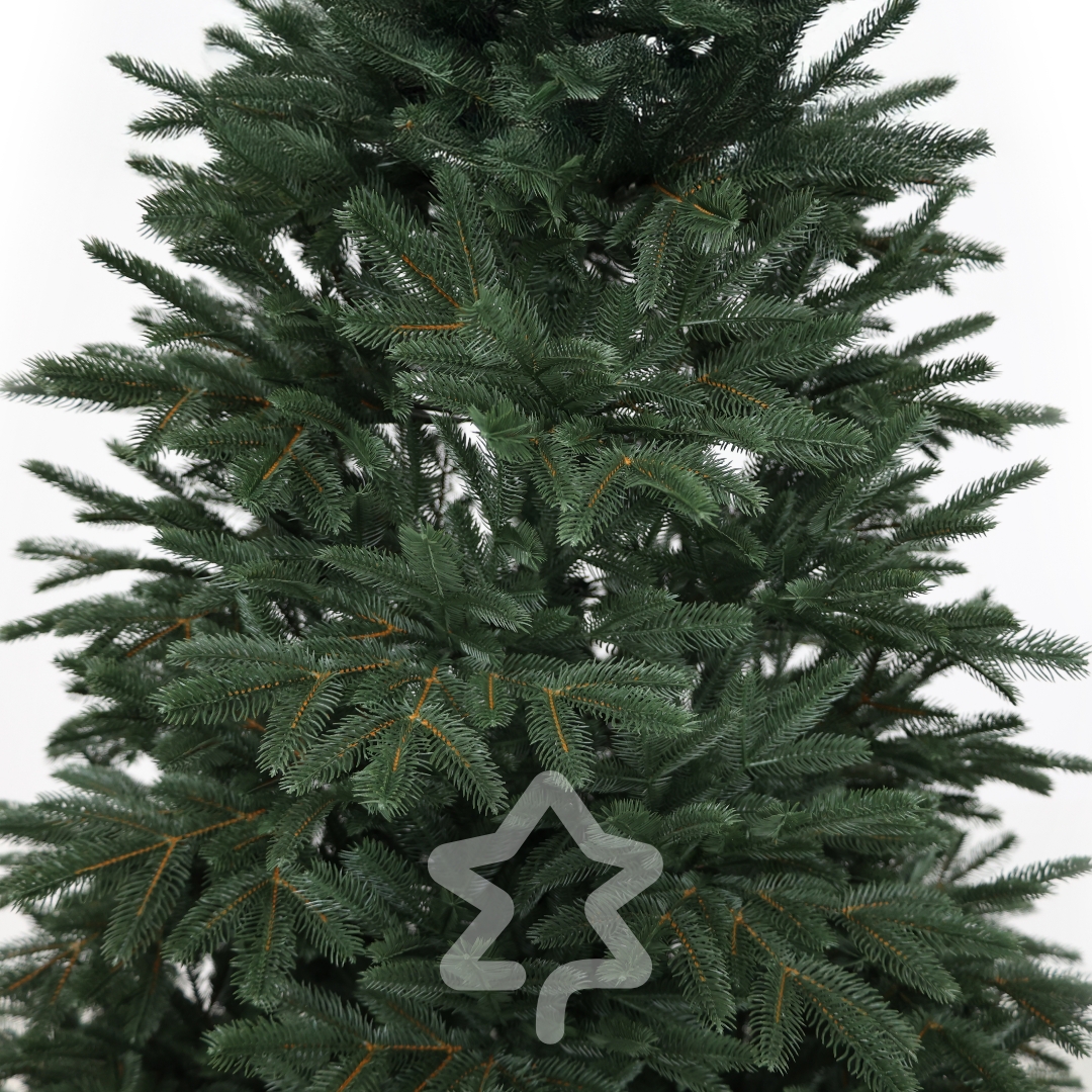 Sibirische Tanne 100 % 150 cm zeichnet sich durch feine, flache Nadeln und eine hochwertige Anmutung und 100% 3D‑PE‑Nadeln, die von echten kaum zu unterscheiden sind aus.